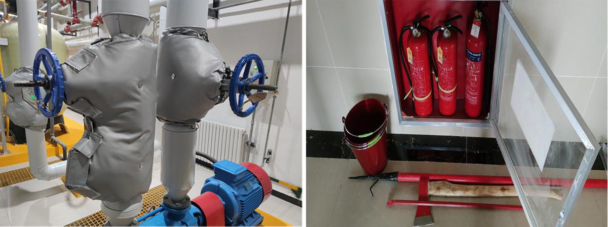 對照《電力設備消防典型規程》、《化工企業安全衛生設計規范》及常規安全要求,對財務室、資料室、控制室等部室及配電室的精密儀器配備了CO2滅火器,對財務室安裝了防盜門及防盜窗戶鋼筋網,給燃氣管道增設了防撞欄桿,為軟化水高處操作部位設置了操作爬梯平臺,并儲備了能源站防毒面具、消防鉤、消防桶、消防板斧等應急物資,通過自查自改公司安全生產隱患,應急保障能力得到進一步加強和提高。